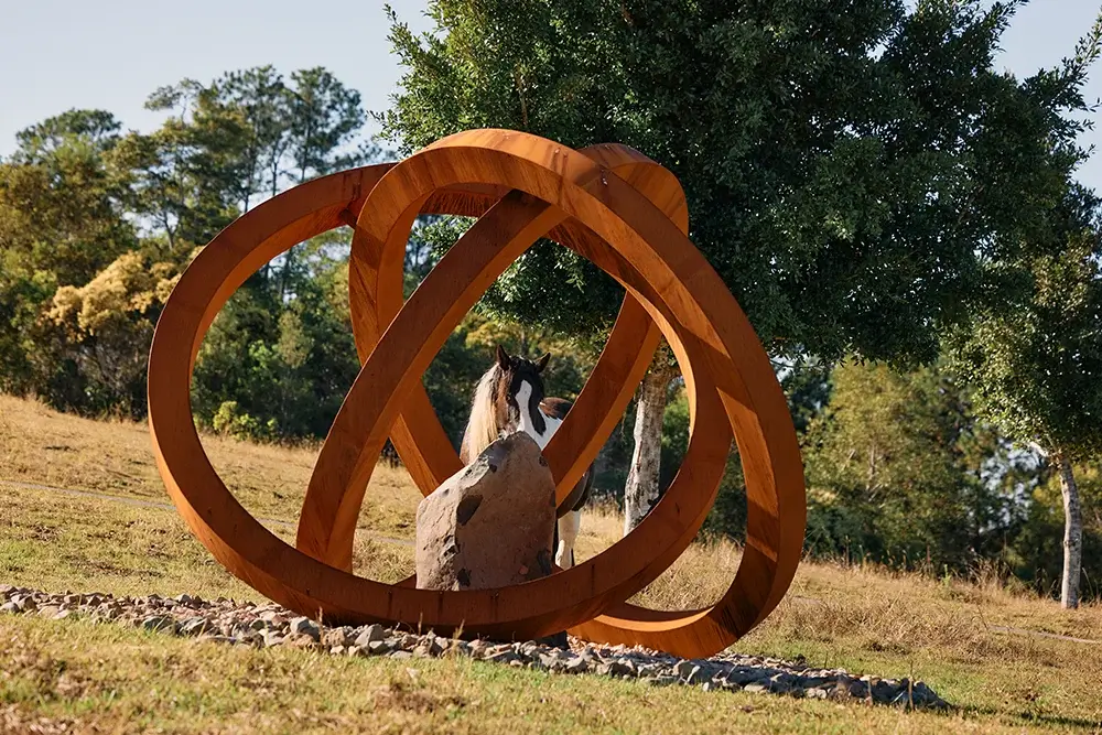 Crafted from repurposed farm plough discs, they celebrate Ron's love for the ginger flower and Lynn's connection to her farming roots.