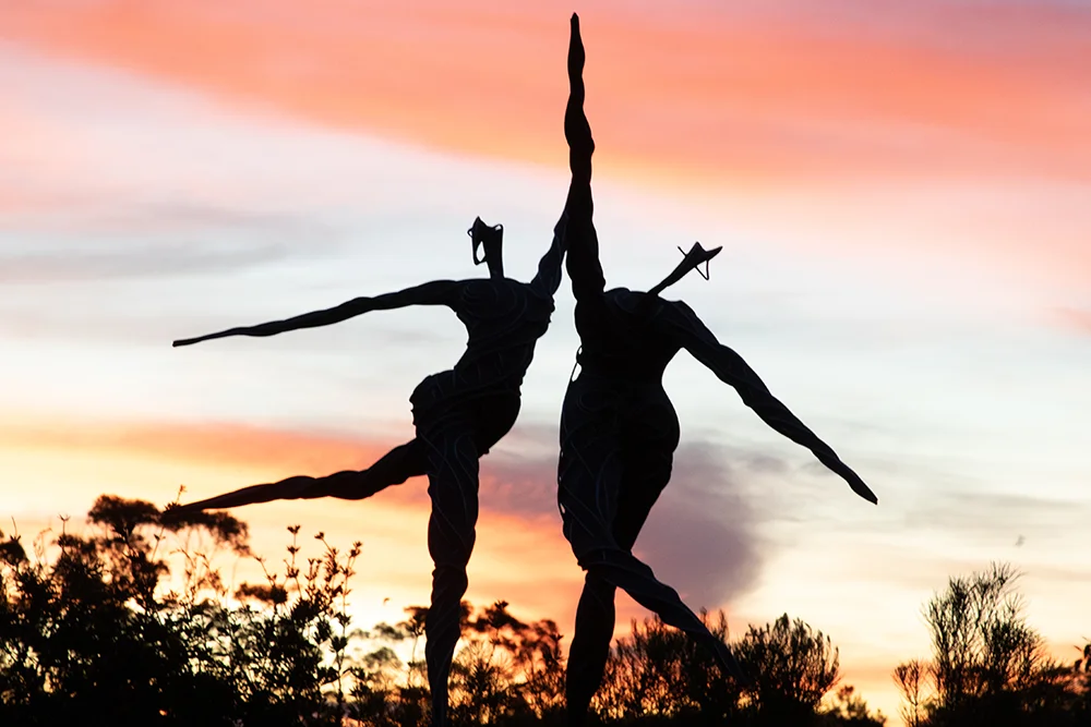 These two high flying and fluid sculptures try to capture that dynamic state and joyous feeling of a body able to fly through the air.